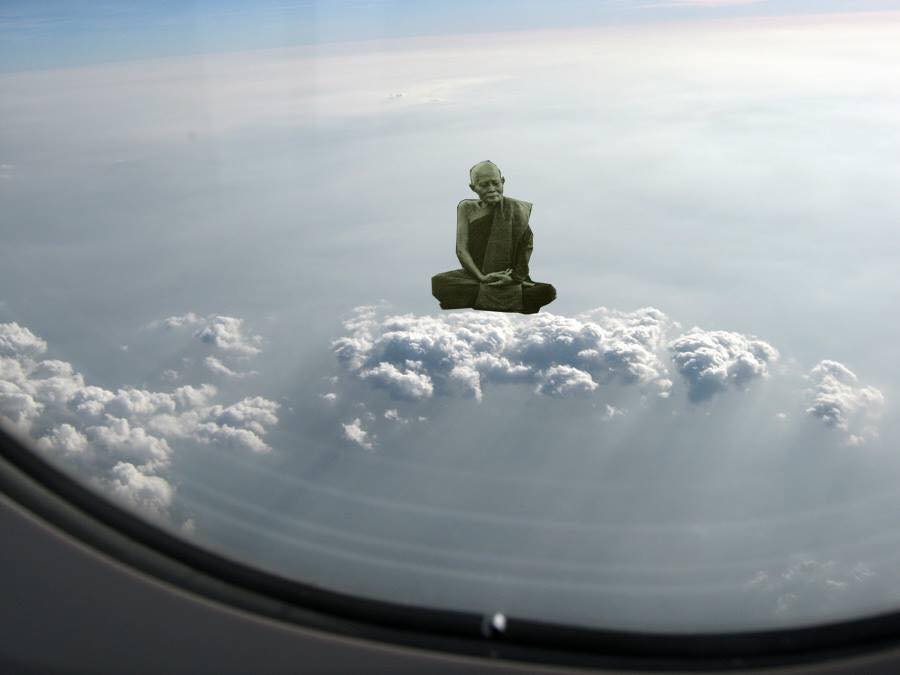 ” หลวงพ่อฤาษี เล่าว่า มีทหารอากาศ ขับเครื่องบินเหาะข้ามวัดดอยแม่ปั๋งไป นักบิน คนนั้นตกใจจนหูตาเหลือก เพราะพบหลวงปู่ผู้เฒ่านั่งอยู่บนก้อนเมฆ ขวางทางบินอยู่ ต้องรีบบังคับเครื่องหลบ ตาลีตาเหลือก ขาบินกลับก็พบหลวงปู่องค์เดิมอยู่บนก้อนเมฆอีก