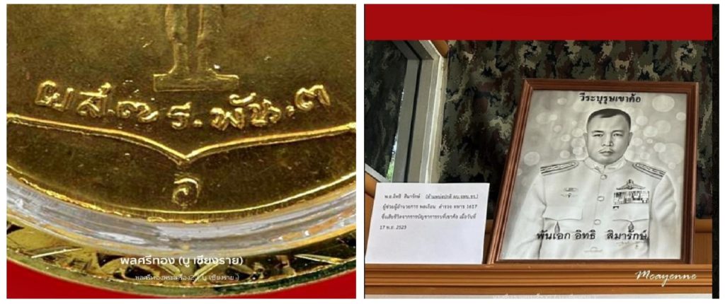 The 1st Infantry Battalion, 7th Mixed Regiment, Kawila Camp, Chiang Mai Province, requested permission from Luang Por Kasem to create and perform a consecration ceremony at the Trilak Cemetery. They assigned Mr. Mongkol Kasem Mongkolcharoen to be the designer. What is more special than other models is that they invited the image of Phra Borommathat Doi Suthep, the most important sacred site of Chiang Mai Province, to be created on the back of the coin.