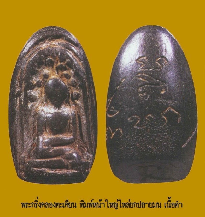 Phra Kring Klong Takhian was discovered only in Ayutthaya. It can be divided into 3 colors: black, yellowish-green, and grayish-green. There are 5 types in total: large-faced, raised-shouldered type / double-faced type / small-faced type / closed-eye type / special type, closed-eye, hermit face (very rare).