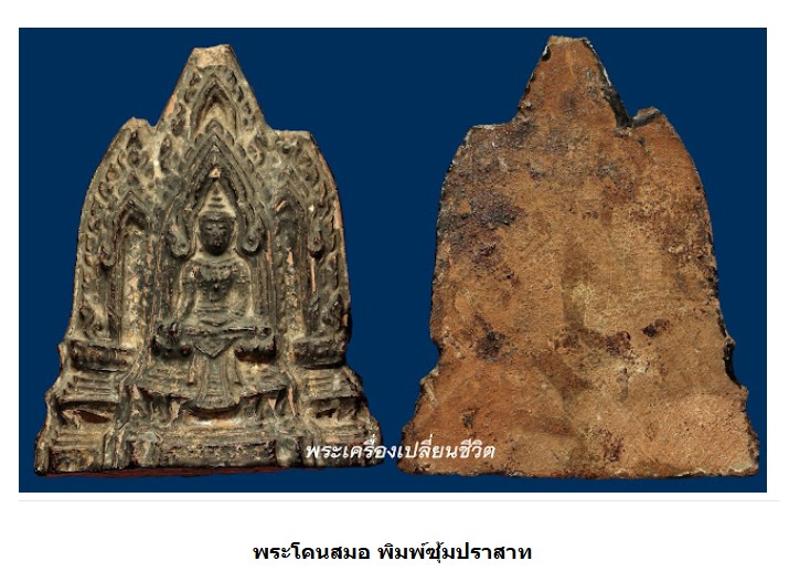 帕昆萨莫(Phra Kon Samo)是一枚佛牌,上面刻有佛像的诞生日姿势,以及其他姿势,例如玛拉维贾亚姿势、帕拉萨拱姿势和帕亚乔姆普姿势等。佛像美丽,图案线条优美、清晰锐利、深邃。这是一件具有皇家工匠风格的精美佛教艺术护身符。它是为皇室和王室高级成员避邪的护身符。在大城王朝时期,从帕萨通国王时期到埃卡泰国王时期,它广受欢迎。据估计,它是从大城王朝中期 - 拉达那哥欣王朝早期开始制作的。